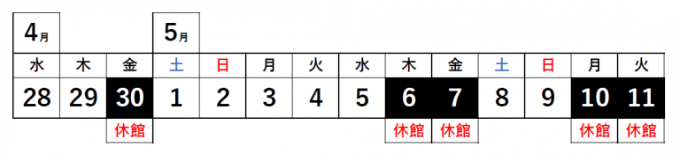 | GW休館日のお知..> | 2021-04-28 17:11 | 18K | ||