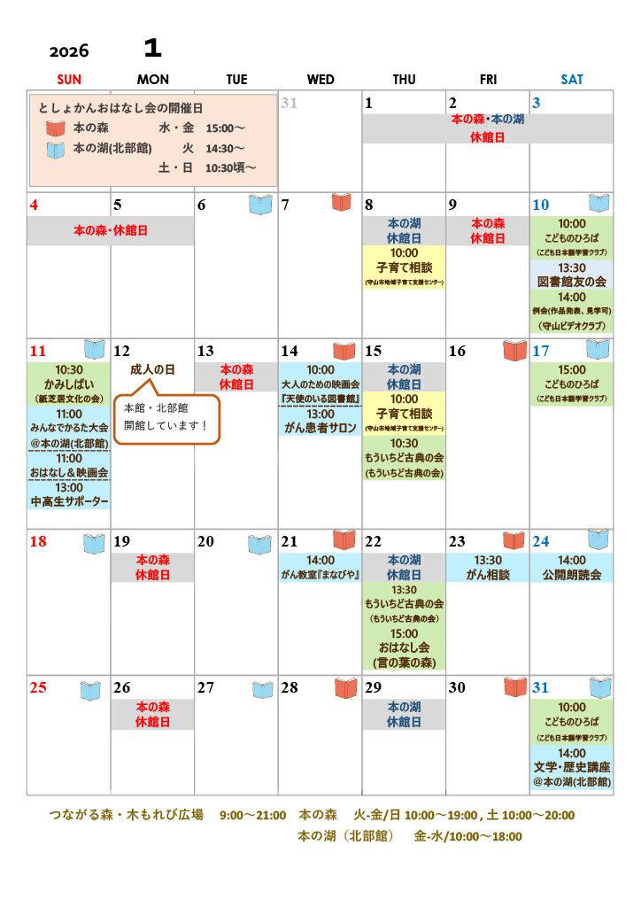 令和7年度1月の図書館行事カレンダー