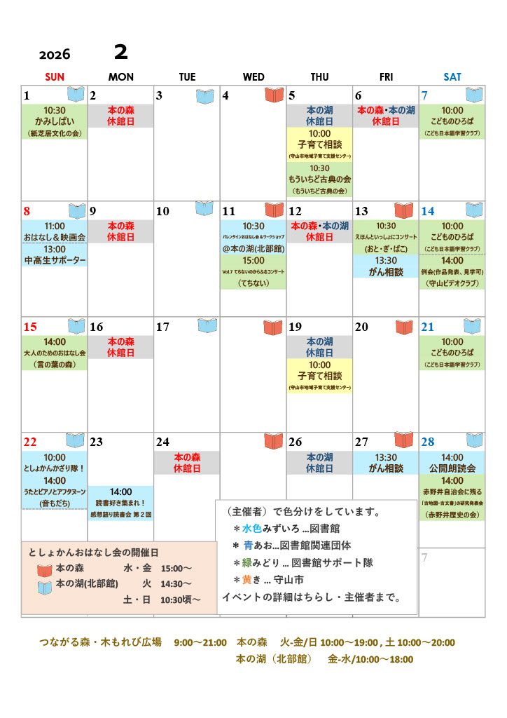 令和7年度2月の図書館行事カレンダー