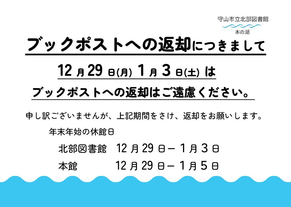 年末年始の休館日のお知らせ